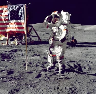 A Lua não tem atmosfera, mas é relativamente perto da Terra, o que facilita o transporte de pessoas e suprimentos.
